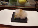 No picture here, but the dish was simply a shot of carbonated mojto inside an algenate sphere, with a few flecks of lime zest on top.  Tasted just like a mojito, very fun presentation on a spoon.