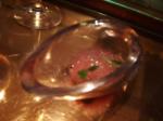 No pic and my least favorite dish of the evening.  It just wasn’t for me.  It consisted of two fresh clams, a potato puree I believe and (in my opinion) and overly rich and creamy sauce.  I guess it just didn’t remind me of clam chowder, and the creaminess of the sauce didn’t go well with the clams.  No big deal, this was my only real clunker of the night.